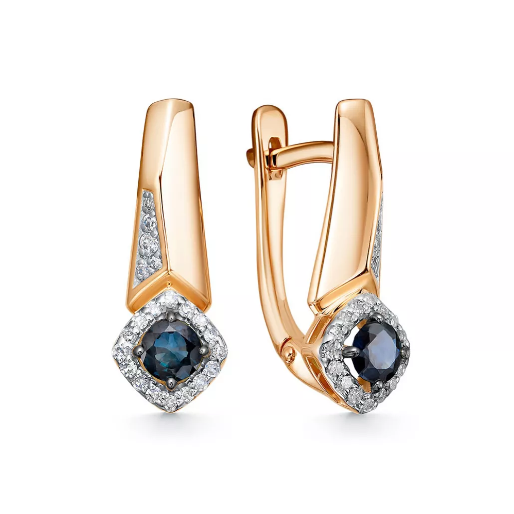 - Серьги с бриллиантами с сапфиром из золота
